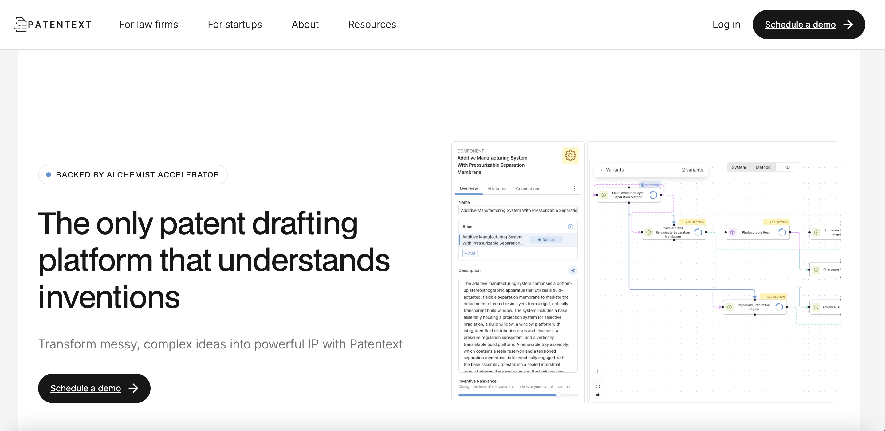 Patlytics is an AI-native patent intelligence platform that goes beyond drafting to cover infringement detection, claim charting, portfolio analysis, and more. It's backed by Google's Gradient Ventures and has raised $21M in funding.